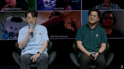 이범준 넥슨게임즈 총괄 PD(왼쪽)와 주민석 디렉터가 퍼스트 디센던트 1주년 온라인 쇼케이스에 참석했다. / 사진=퍼스트 디센던트 공식 유튜브 |