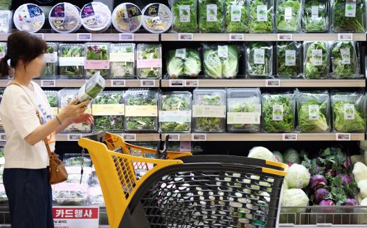 서울 시내 한 대형마트에서 한 시민이 채소 가격을 살펴보고 있다. 최근 마늘·호박 등 일부 채소류를 비롯해 가공식품, 수산물 가격이 동반 상승하며 장바구니 물가가 다시 들썩이고 있다. 뉴스1 |