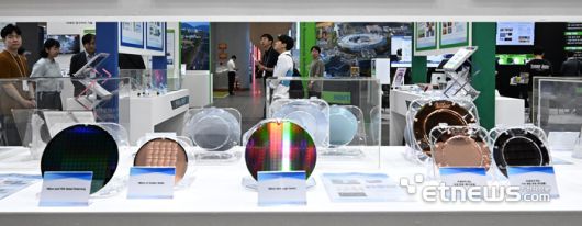 나노코리아2025가 '더 나은 미래를 만드는 나노기술'을 주제로 2일 경기 고양시 킨텍스에서 열렸다. 참관객이 한국나노기술원의 시스템반도체와 화합물반도체 등의 기술을 살펴보고 있다. 이동근기자 foto@etnews.com [Copyright © 전자신문. 무단전재-재배포금지]
