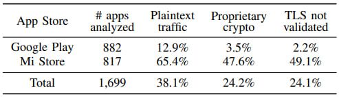 미국 프린스턴대학교와 캐나다 토론토대 산하 시티즌랩(Citizen Lab)은 지난 5월 IEEE 보안·프라이버시 심포지엄 2025에서 공동 발표를 통해 샤오미의 앱 생태계가 광범위한 보안 취약 상태에 놓여 있다는 분석 결과를 공개했다. 보고서에 따르면, 샤오미의 공식 앱스토어인 미 스토어(Mi Store)에 등록된 앱의 47.6%가 비표준 암호화, 혹은 자체 제작한(Home-rolled) 암호화 방식을 사용하고 있었으며, 이들 상당수는 TLS 인증서 검증조차 수행하지 않는 것으로 드러났다. 이는 기본 탑재된 디폴트 앱과 관련해서도 위험성이 있다고 추정할 수도 있다.