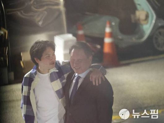 최태원 SK그룹 회장(오른쪽)과 아들 인근씨 [사진=온라인 커뮤니티] |