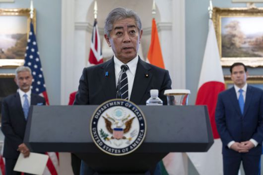 ▲ 1일(현지시간) 워싱턴 D.C에서 열린 쿼드 외무장관 회담에 참석한 이와야 다케시 일본 외무상이 회담 전 취재진과 만나 발언하고 있다. ⓒAP=연합뉴스 |