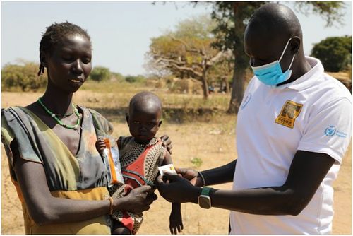 남수단 북부 바르엘가잘주에서 어린이의 영양 상태를 검사하는 국제구조위원회 직원 |