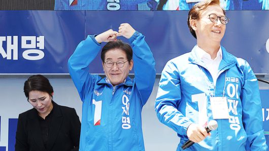 이재명 대통령이 대선 후보 시절인 지난 5월 14일 부산시 부산진구 서면 젊음의거리에서 열린 부산유세에서 해양수산부 부산 이전 등을 약속한 뒤 손가락을 걸어 보이고 있다. 김성룡 기자 |