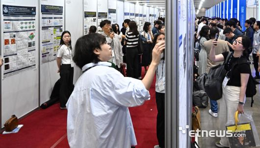 나노코리아2025가 '더 나은 미래를 만드는 나노기술'을 주제로 2일 경기 고양시 킨텍스에서 열렸다. 나노기술 연구 성과를 선보이는 포스터세션장이 참관객으로 북적이고 있다. 이동근기자 foto@etnews.com [Copyright © 전자신문. 무단전재-재배포금지]