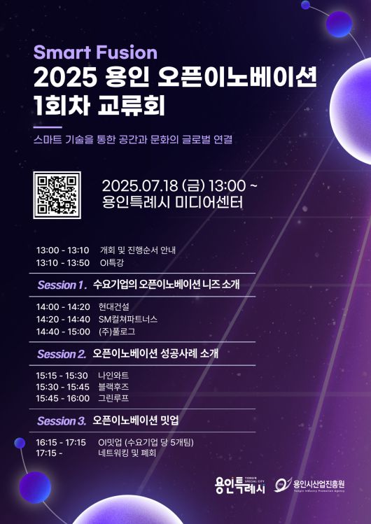 기술 혁신을 통해 도시, 문화, 산업을 연결하는 ‘2025 용인 오픈이노베이션 1회차 교류회’가 오는 7월 18일(금), 용인특례시 미디어센터에서 열린다.