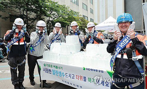 직원들에게 얼린 생수 나눠주는 조선소 |