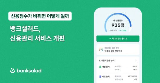 [한국금융신문 김다민 기자] 뱅크샐러드(대표 김태훈)가 신용점수별 대출 능력, 카드 능력을 확인할 수 있는 신용관리 서비스를 개편했다고 2일 밝혔다.