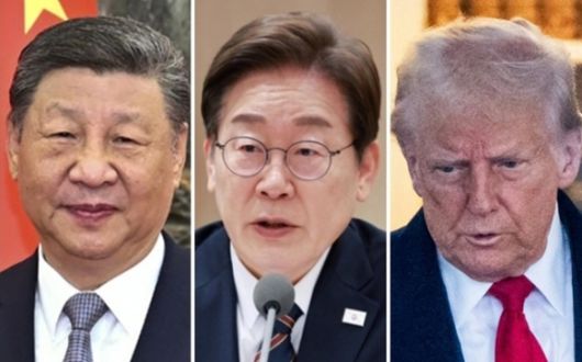 왼쪽부터 시진핑 중국 국가주석, 이재명 대통령, 도널드 트럼프 미국 대통령. 연합뉴스 자료사진 |