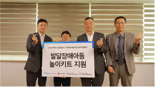 이날 실효성 있는 지원을 위해 허그는 사전에 발달장애 아동 부모를 대상으로 설문조사를 실시하고, 아이들의 인지·감각 발달을 돕기 위한 8종의 놀이교구로 준비했다.