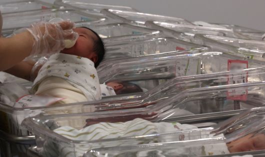 신생아실에서 분유를 먹고 있는 아기들. 대한민국 인구 감소가 가속화되는 가운데, 다음 세대를 이끌어갈 아이들의 울음소리가 점점 줄고 있다. 연구에 따르면 현재 5000만 명이 넘는 우리나라 인구는 100년 뒤 750만 명 수준까지 감소할 수 있다는 전망도 나왔다. 뉴시스 |