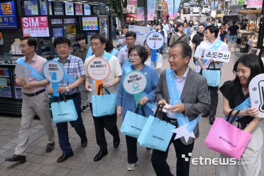 산업통상자원부와 한국에너지공단이 주최한 2025년도 여름철 에너지절약 캠페인 출범식'이 2일 서울 중구 온드림소사이어티에서 열렸다. 환경단체 관계자들이 에너지절약 캠페인 홍보 활동을 하고 있다. 김민수기자 mskim@etnews.com [Copyright © 전자신문. 무단전재-재배포금지]