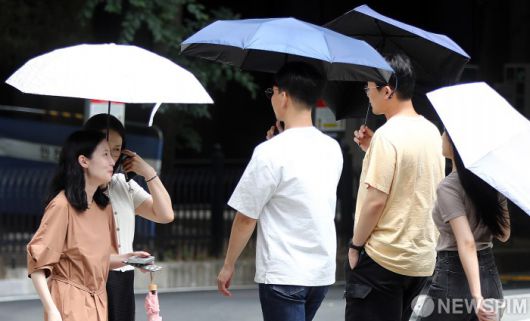 [서울=뉴스핌] 이형석 기자 = 무더위가 이어지며 체감온도가 33도를 넘나드는 1일 오후 서울 여의도 인근에서 시민들이 양산을 쓰고 발걸음을 재촉하고 있다. 2025.07.01 leehs@newspim.com |