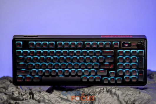 고해상도 디스플레이 + 금속 노브 탑재 키보드 상단에는 컬러 LCD 디스플레이와 다기능 십자형 노브가 배치돼 있다. 상단의 컬러 LCD 디스플레이를 통해 키보드 정보를 실시간으로 확인이 가능하며, 십자 노브를 활용해 볼륨과 조명 밝기 등 다양한 기능을 직관적으로 조절할 수 있다.