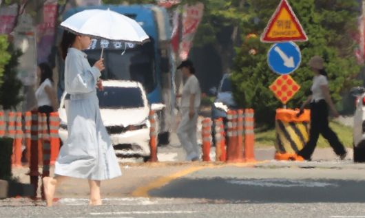 2일 오전 부산 해운대구 센텀대로 위로 뜨거운 지열이 만든 아지랑이가 피어오르고 있다. 연합뉴스