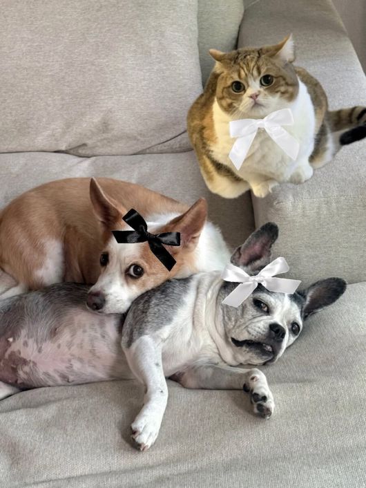 김가은은 자신이 키우는 반려견 두 마리와 윤선우의 반려묘를 합성해 리본 장식을 더한 사진을 공개, 웃음을 자아내기도 했다.