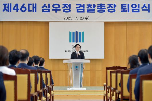 심우정 검찰총장이 2일 대검찰청에서 열린 퇴임식에서 퇴임사를 하고 있다. 연합뉴스 |