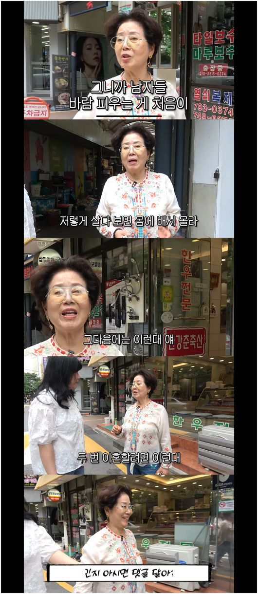 이어 선우용여는 “그러니까 남자들 바람 피우는 게 처음이 무섭지, 그 다음에는 이런대. 이런 핑거 스냅을 한대”라고 말해 제작진을 당황시켰다. 선우용여는 “내가 옛날에 들었는데 한 번 이혼할 때 제일 어렵대. 두 번 이혼하려면 이런대. 세 번째는 더 쉽게 핑거스냅을 하는 거다”라고 말해 웃음을 안겼다./osen_jin0310@osen.co.kr
