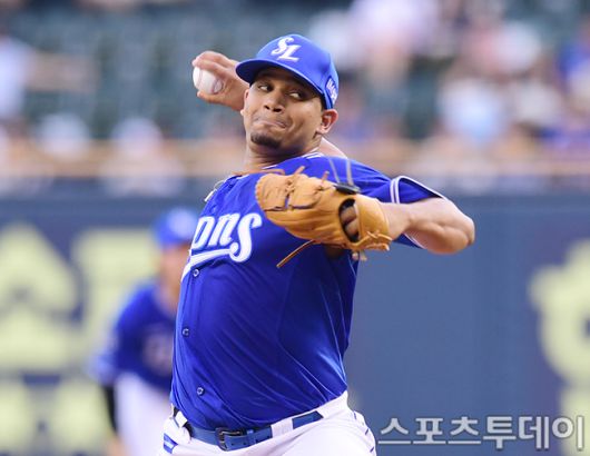 [스포츠투데이 권광일 기자] 2025 신한은행 SOL Bank KBO리그 삼성 라이온즈와 두산 베어스의 경기가 2일 서울 잠실야구장에서 열렸다. 삼성 선발투수 카라비토가 1회말 등판해 역투하고 있다. 2025.07.02. [스포츠투데이 권광일 기자 sports@stoo.com]