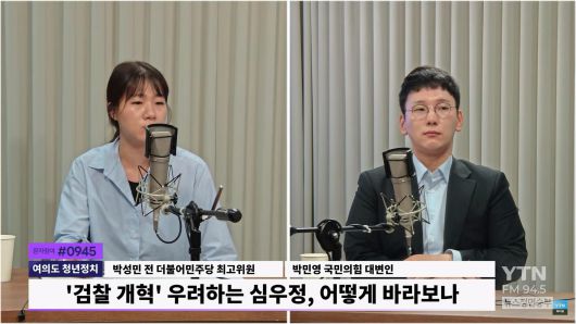 * 아래 텍스트는 실제 방송 내용과 차이가 있을 수 있으니 보다 정확한 내용은 방송으로 확인하시기를 바랍니다.◇ 신율 명지대 정치외교학과 교수 (이하 신율) : 1부에 이어서 2부 <여의도 청년정치> 계속 이어질 텐데요. 스튜디오에는 박성민 전 더불어민주당 최고위원, 박민영 국민의힘 대변인 두 분 나와 계십니다. 심우정 전 검찰총장이 9개월 만에 사의를 표명을 했습니다. 심 전 총장이 이재명 정부에서 추진하는 검찰 개혁에 대해서 '시한과 결론을 정해놓고 추진될 경우에 예상하지 못한 많은 부작용이 생길 수 있다' 이렇게 얘기를 했는데 어떻게 보십니까?