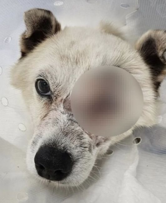 경남 거제에서 현역 해병대원 등 3명의 남성이 난사한 수백 발의 비비탄을 맞고 가까스로 살아남은 피해견이 결국 안구를 적출했다.