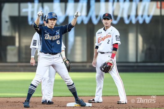 2회초에는 데이비슨 우익수 뜬공, 박건우 유격수 땅볼, 오영수 우익수 뜬공으로 삼자범퇴. 한화 역시 2회말 노시환 2루수 뜬공, 채은성 3루수 땅볼, 최인호 헛스윙 삼진으로 출루 없이 물러났다.
