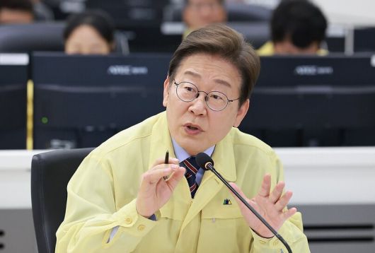 이재명 대통령이 지난달 12일 서울 서초구 한강홍수통제소에서 수해(장마) 대비 현장 점검 회의를 주재하고 있다. 연합뉴스 |