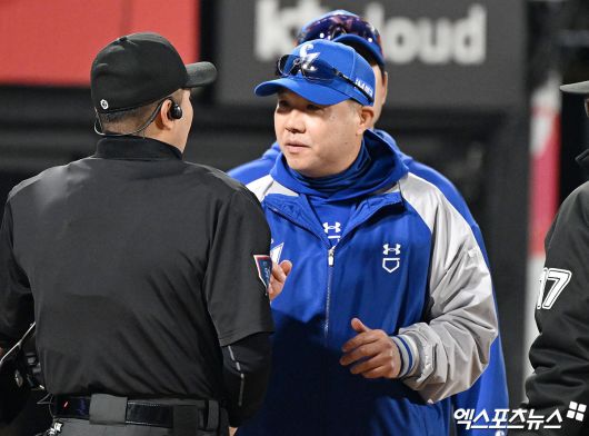 더그아웃을 박차고 나온 박 감독은 3루심에게 다가가 강하게 불만을 드러냈다. 최일언 수석코치 등 코치들이 박 감독을 말리기 위해 그라운드에 나왔고, 2루심, 1루심, 주심도 한 곳에 모였다. 사령탑의 화는 좀처럼 사그라들지 않았다.