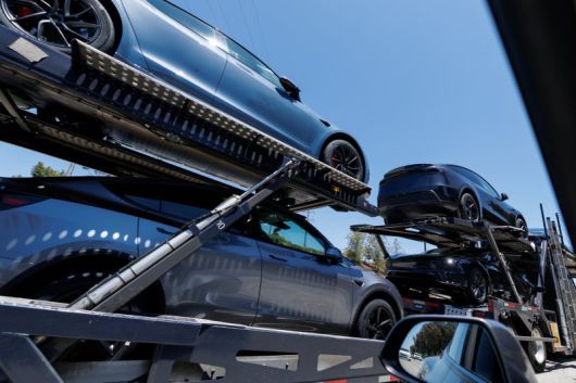 미국 캘리포니아주 샌 후안 카피스트라노에서 1일(현지시간) 테슬라 신차를 실은 트럭이 도로를 달리고 있다. 로이터 연합 |