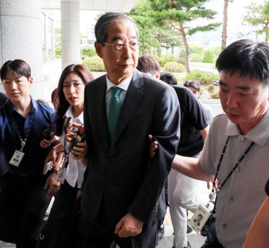 '12·3 불법계엄'을 방조했다는 의혹을 받는 한덕수(가운데) 전 국무총리가 내란 특검조사를 받기 위해 2일 서울 서초구 서울고검청사로 출석하고 있다. 이날 안덕근 산업통상자원부 장관과 유상임 과학기술정보통신부 장관 등 윤석열 정부 국무위원들이 잇따라 소환됐다. 뉴시스