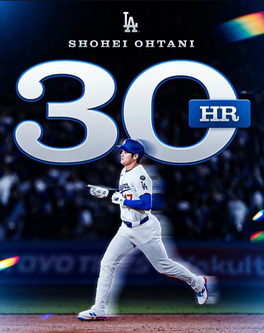 다저스 구단 역사를 갈아치운 기록이기도 하다. 오타니는 개막 86경기에서 30홈런을 날렸는데, 이는 길 호지스(1951년)와 듀크 스나이더(1955년)가 기록한 28홈런을 넘는 다저스 구단 역사상 개막 86경기에서 나온 최다 홈런 기록이다. 앞자리가 2에서 3으로 바뀐 상징성도 있다.