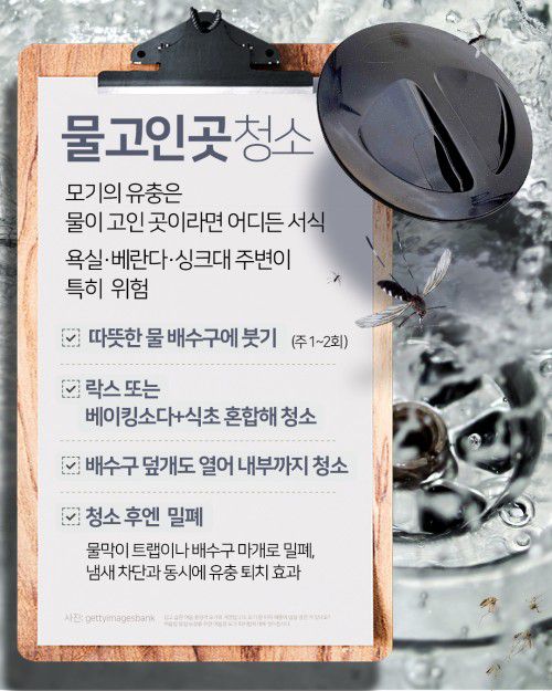 배수구, 하수구, 정화조 청소 철저