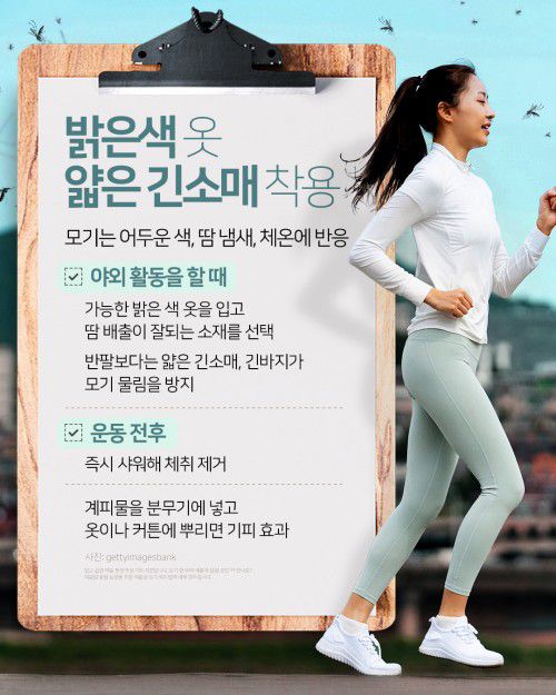 반팔보다는 얇은 긴소매, 긴바지가 모기 물림을 방지합니다.