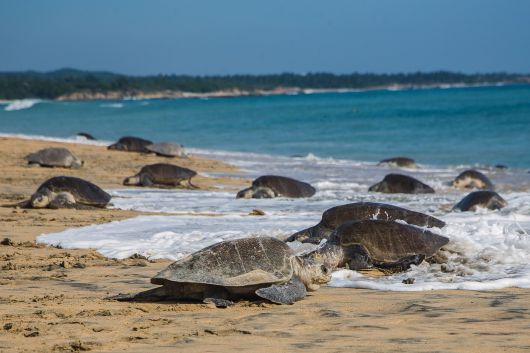 지난 2018년 7월 20일(현지시간) 멕시코 미초아칸 주의 익스타필라 해변에 알을 낳기 위해 도착한 올리브 리들리 바다거북(레피도클리스 올리바세아). AFP=연합뉴스 |