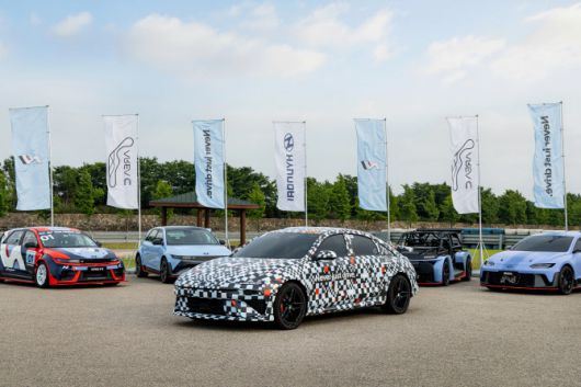 경기 화성 현대차·기아 남양연구소 테스트 트랙에 진열된 ‘아이오닉 6 N’ 프로토타입(가운데)과 현대 ‘N’ 브랜드 차량들(사진=현대차) |