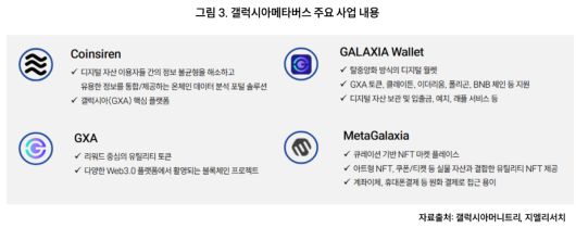 박창윤 지엘리서치 연구원은 "갤럭시아머니트리 자회사 갤럭시아메타버스는 동사 정보기술(IT) 본부를 총괄했던 한봉용 대표를 1일 신임 대표로 선임해 스테이블코인 기반의 실사용 결제 모델과 관련 인프라 고도화를 목표로 관련 사업을 준비 중"이라며 "갤럭시아메타버스는 자체 유틸리티 토큰 GXA를 보유하고 있으며, 스테이블코인을 통한 결제, 해외 송금, ATM, 지역화폐 연계 서비스까지 포괄하는 블록체인 생태계 확장을 중장기 전략으로 추진한다"라고 밝혔다.