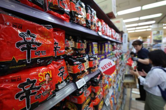한 대형마트에 농심의 대표상품 신라면이 진열돼 있다. 연합뉴스 |