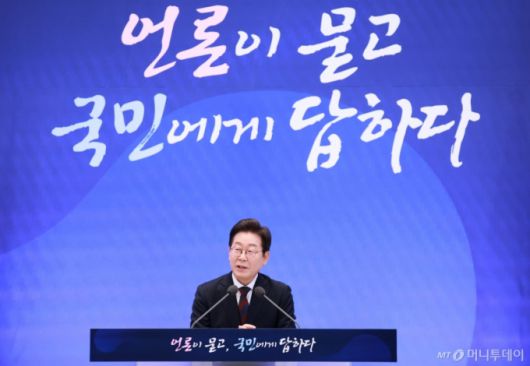 [서울=뉴시스] 고범준 기자 = 이재명 대통령이 3일 청와대 영빈관에서 열린 '대통령의 30일, 언론이 묻고 국민에게 답하다' 기자회견에서 발언하고 있다. (대통령실통신사진기자단) 2025.07.03. bjko@newsis.com /사진= |