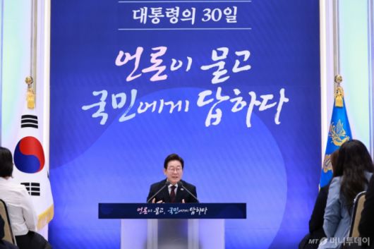 이재명 대통령, 3일 청와대 영빈관 '대통령의 30일, 언론이 묻고 국민에게 답하다' 기자회견.