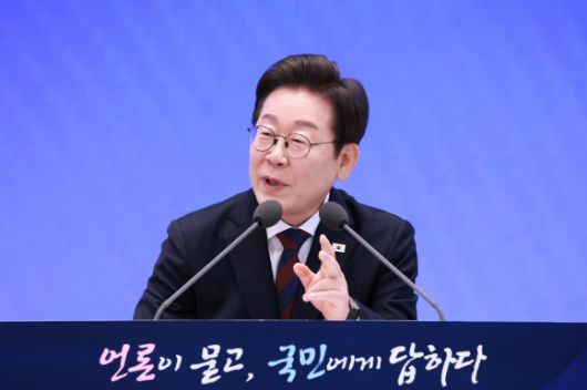 이재명 대통령, 취임 30일 기자회견 - 이재명 대통령이 3일 청와대 영빈관에서 열린 ‘대통령의 30일, 언론이 묻고 국민에게 답하다’ 기자회견에서 발언하고 있다. 2025.7.3 연합뉴스 |