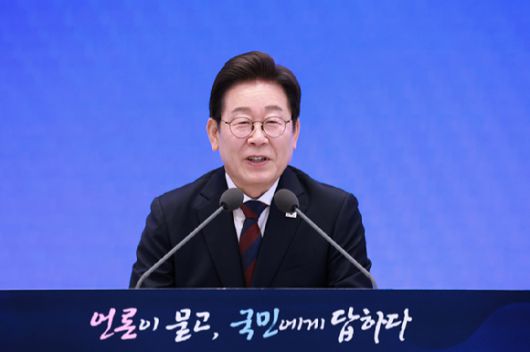 이재명 대통령이 3일 청와대 영빈관에서 열린 '대통령의 30일, 언론이 묻고 국민에게 답하다' 기자회견에서 취재진 질문을 받고 있다. 2025.7.3 [대통령실통신사진기자단] [사진=연합뉴스] |