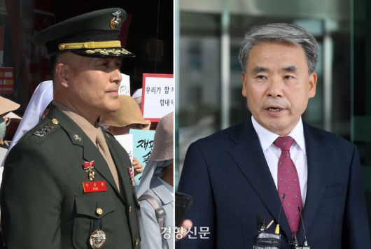 박정훈 전 해병대 수사단장의 채 해병 순직사건 수사 이첩 관련 항명 및 상관명예훼손 혐의 7차 공판이 열린 지난해 9월3일 서울 용산구 국방부 중앙군사법원으로 오전에는 박 대령이, 오후엔 이종섭 전 국방부 장관(오른쪽)이 출석했다. 성동훈·김창길 기자 |