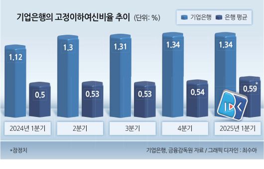통상 중소기업 대출은 다른 대출보다 위험도가 높은 데다 장기간 이어진 경기 침체로 연체율도 높은 편이다. 기업은행은 조달자금의 70% 이상을 중소기업 금융지원에 사용하도록 규정하고 있는 중소기업은행법 시행령에 따라 원화대출금의 80% 이상이 중소기업 대출로 구성돼 있다. 이에 고정이하여신비율이 지난 3월 말 기준 1.34%로 국내 은행 평균(0.59%, 잠정치)의 두 배가 넘는 등 자산건전성 지표가 다른 은행에 비해 취약한 편이다.