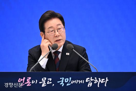 이재명 대통령이 3일 서울 종로구 청와대 영빈관에서 열린 취임 첫 공식 기자회견 ‘대통령의 30일, 언론이 묻고 국민에게 답하다’에 참석해 발언하고 있다. 김창길 기자 |