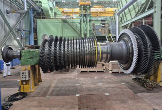 국내 최초로 국산 기술을 활용해 재생정비한 가스터빈 로터(회전축) 모습 [사진 = 한국남부발전소] |
