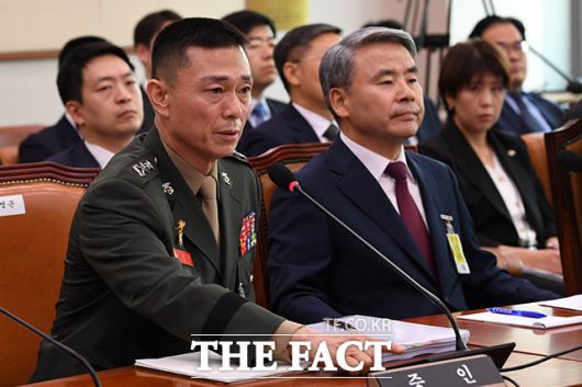 임성근 전 해병대 1사단장이 2024년 6월 21일 오전 서울 여의도 국회에서 열린 법제사법위원회 '채상병 특검법' 입법청문회에 증인 출석해 질의 답변을 하고 있다. 오른쪽은 이종섭 전 국방부 장관. /국회=남윤호 기자 |