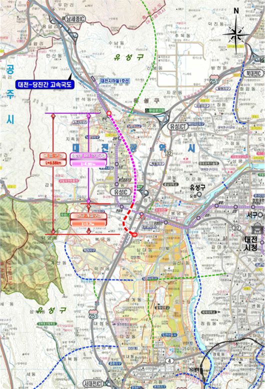 대전 외삼~유성복합터미널 BRT 연결도로 건설사업 노선도. 대전시 제공 |