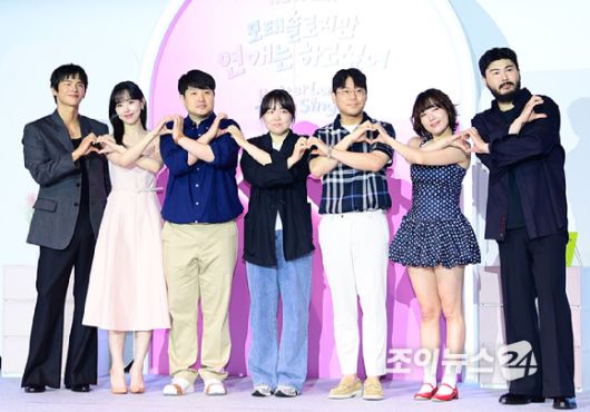 (왼쪽부터)서인국-강한나-조욱형 PD-김노은 PD-원승재 PD-이은지-카더가든이 3일 오전 서울 용산구 CGV 용산아이파크몰에서 열린 넷플릭스 새 연애 리얼리티 예능 '모태솔로지만 연애는 하고 싶어' 제작발표회에 참석하고 있다. [사진=정소희 기자] |