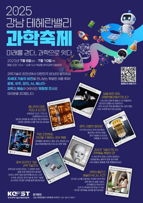한국과학기술단체총연합회(회장 이태식)가 주최하는 '2025 강남 테헤란밸리 과학축제'가 오는 8~10일, 서울 역삼동 한국과학기술회관에서 열린다.