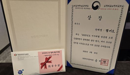 경기도가 농림축산식품부 주관으로 개최된 '2025년 조류인플루엔자 방역결의 및 평가대회'에서 지자체 맞춤형 방역 관리 부문 1위인 최우수상을 수상했다.